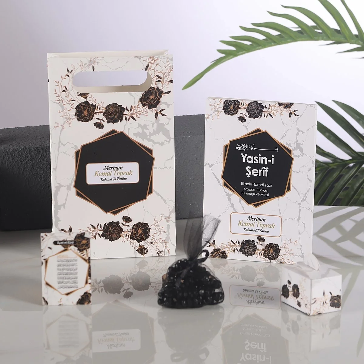 Çiçek Siyah OPP + Yasin + Magnet + Tesbih