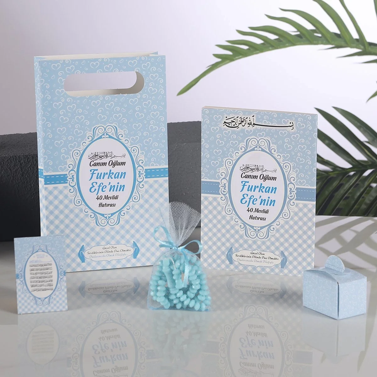 Çiçek Mavi OPP + Yasin + Magnet + Tesbih