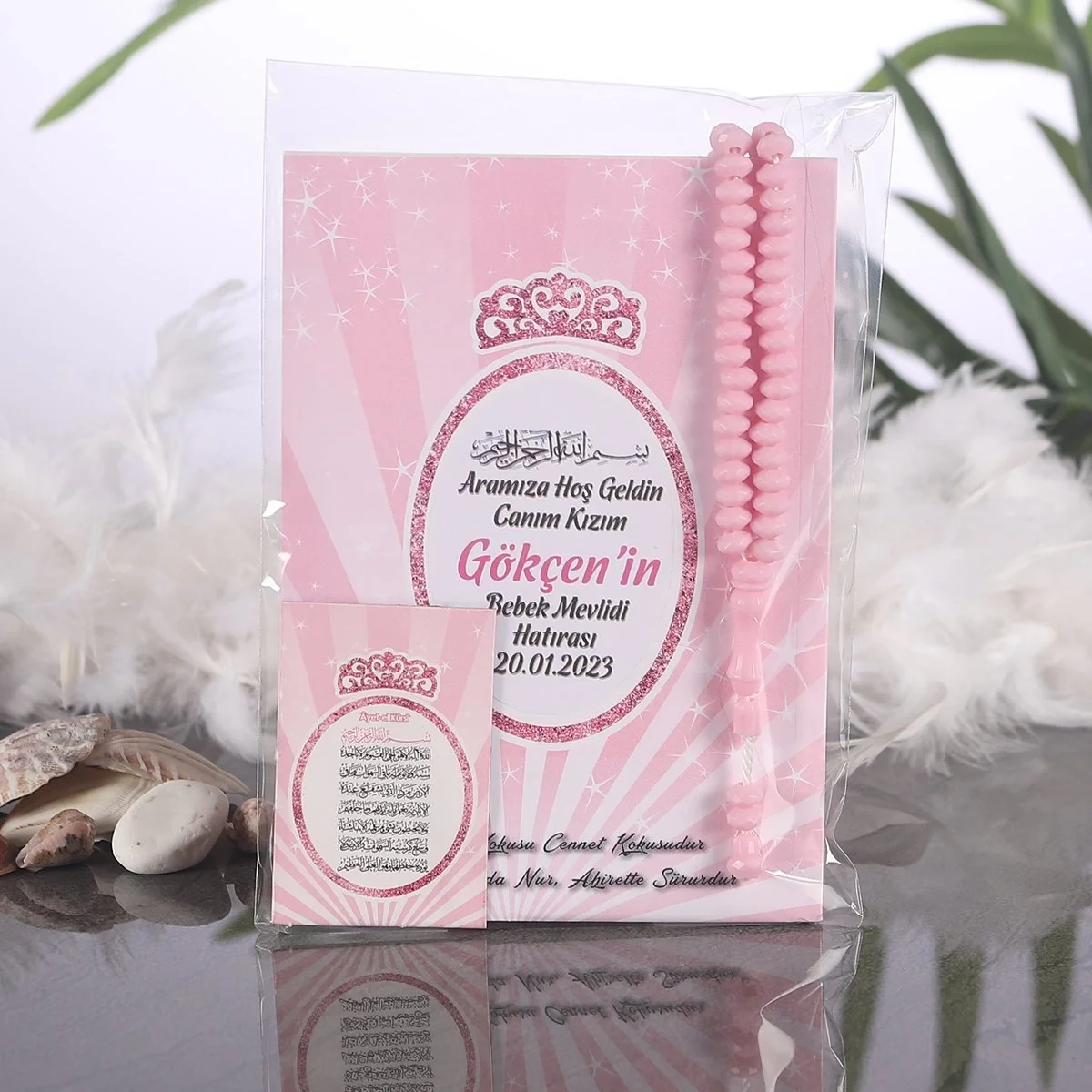 Taç Pembe OPP + Yasin + Magnet + Tesbih