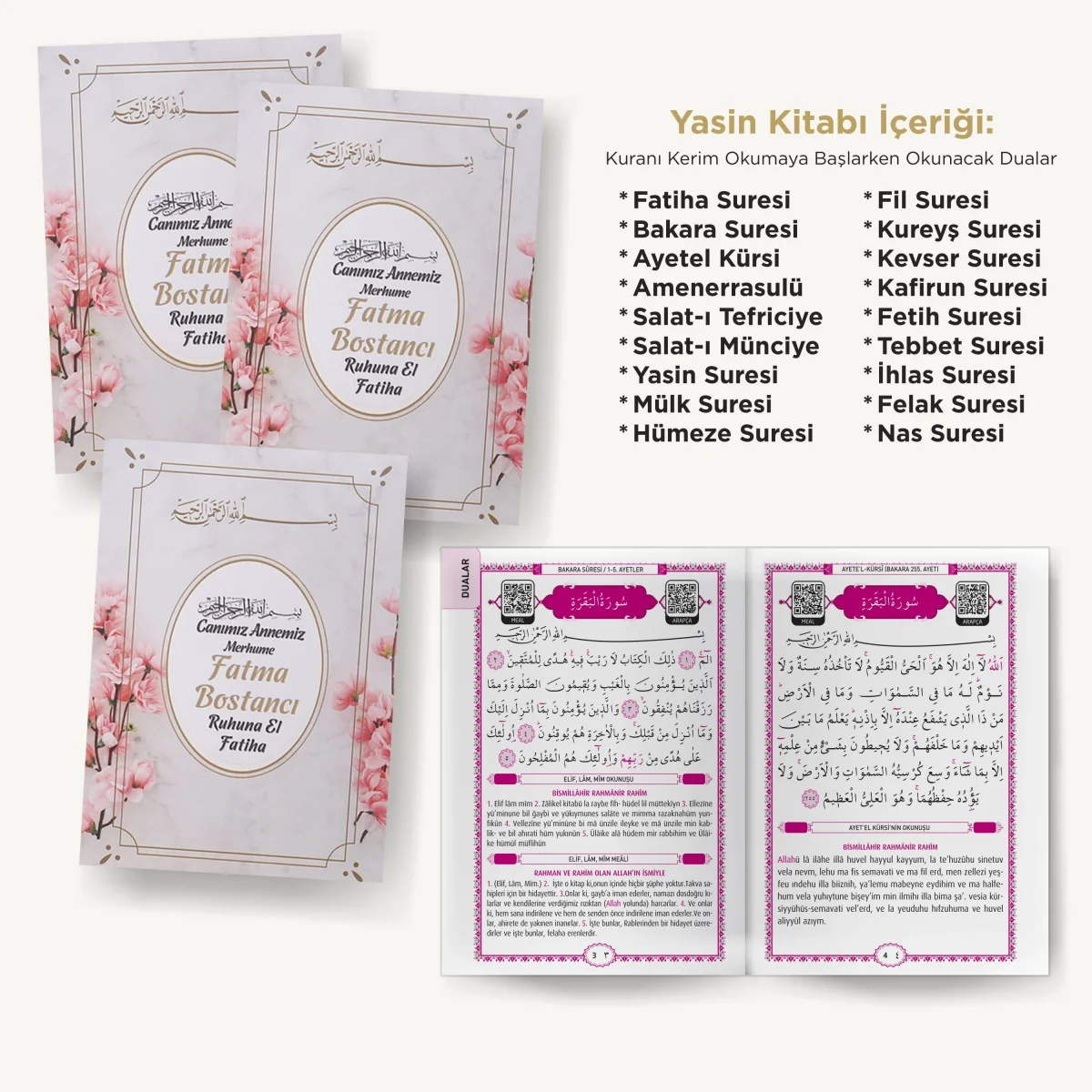 Çiçek Pembe OPP + Yasin + Magnet + Tesbih
