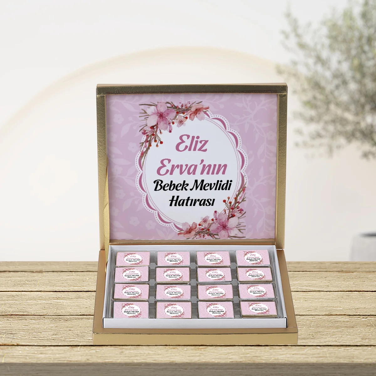 64 Sayfa Çiçek Pembe 48'li Gold Kutu Çikolata