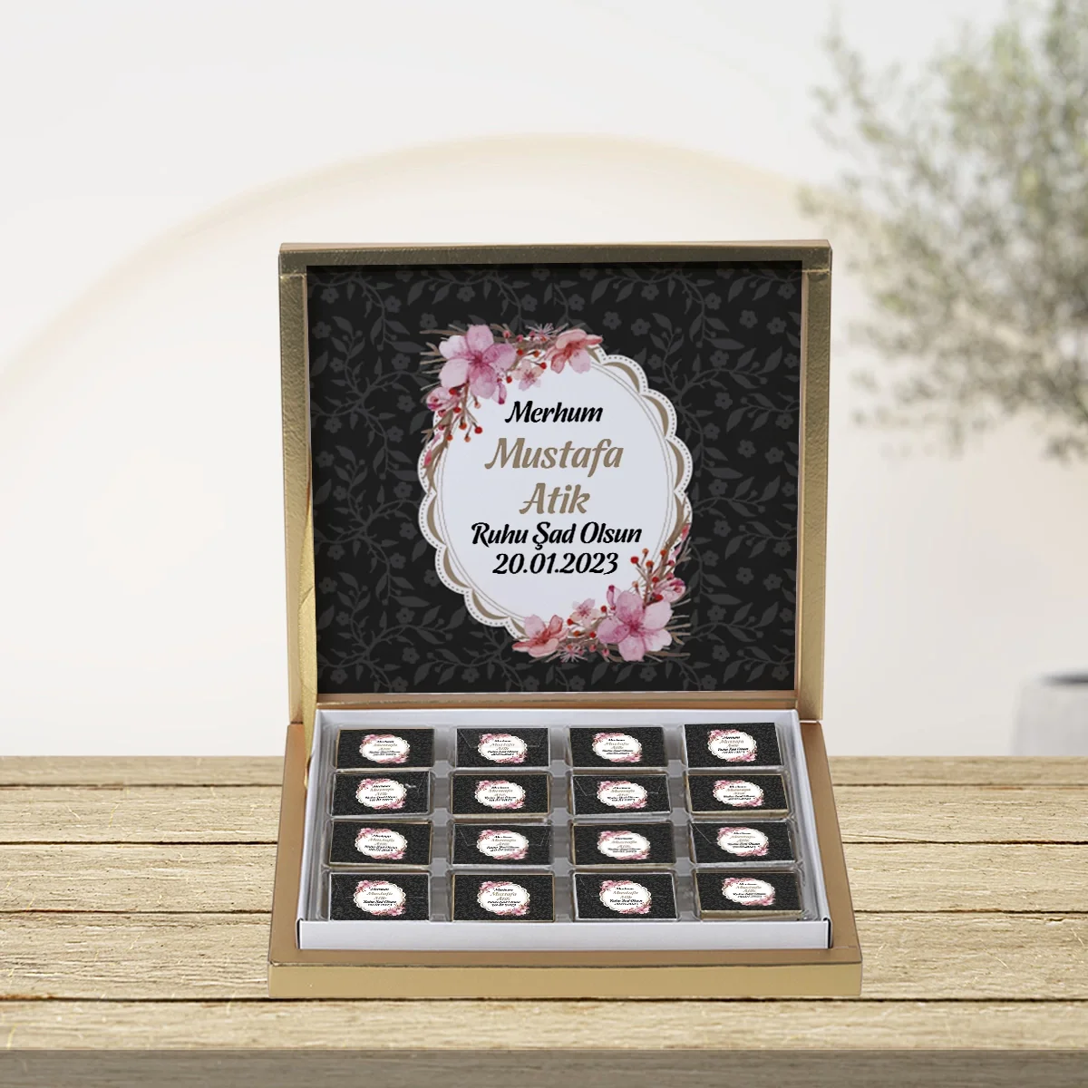 64 Sayfa Çiçek Siyah 48'li Gold Kutu Çikolata