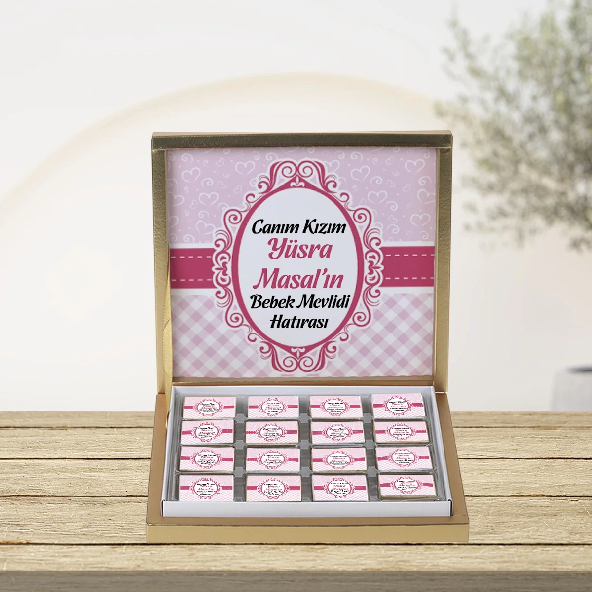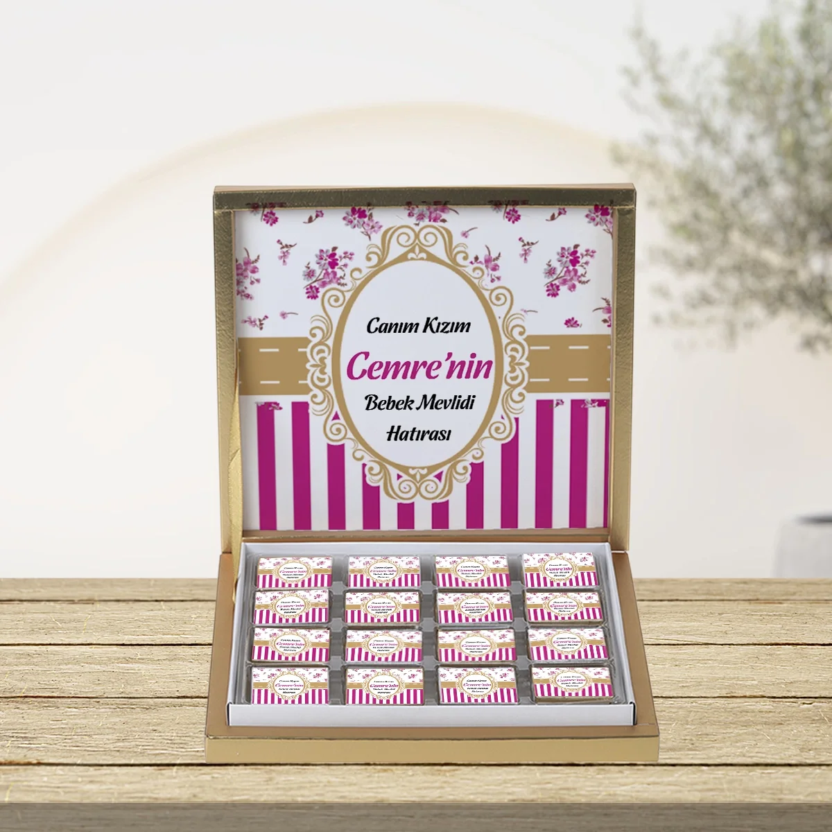 64 Sayfa Zerafet Pembe 48'li Gold Kutu Çikolata
