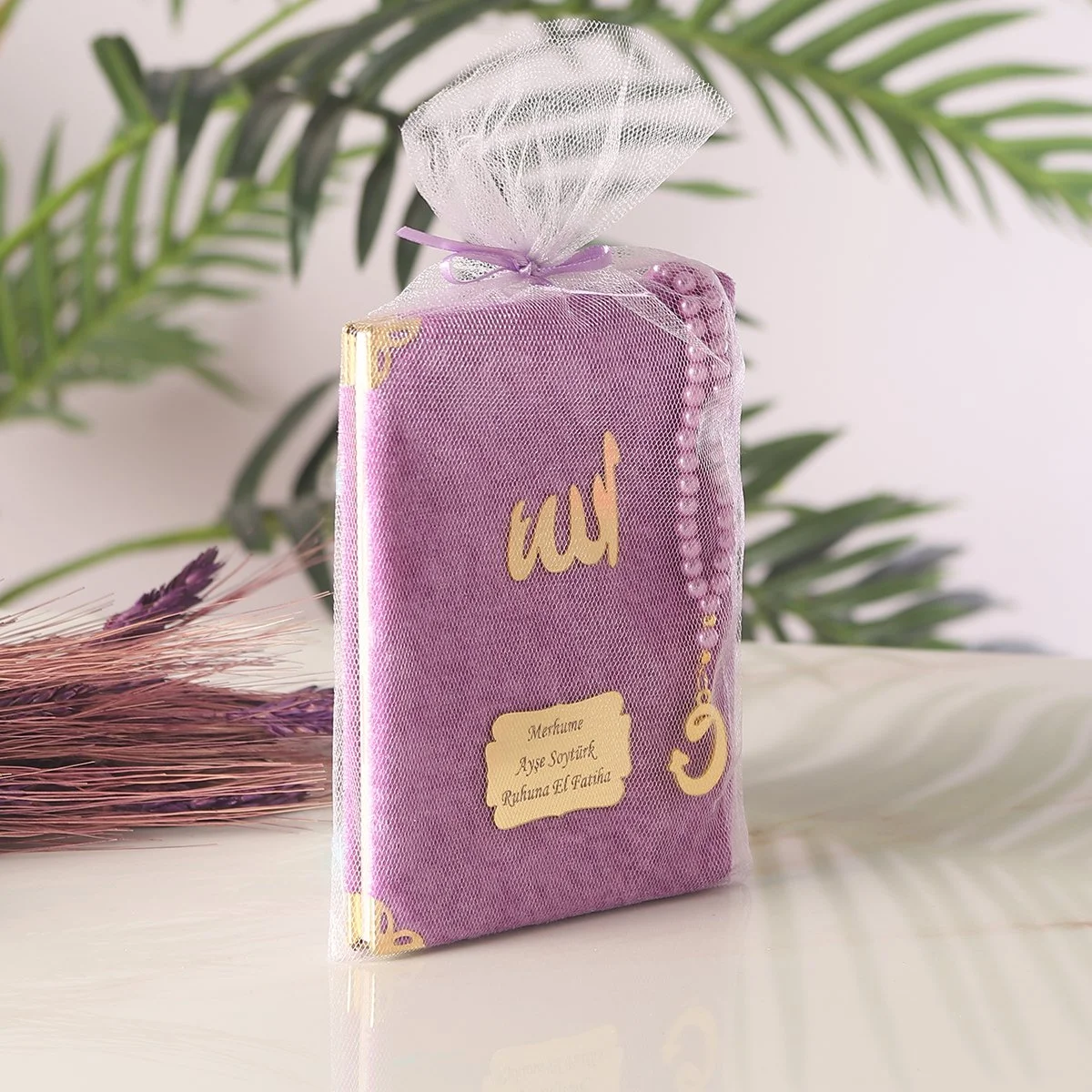 64 Sayfa Lila Kadife Yasin + İnci Tesbih + Kutulu Seccade