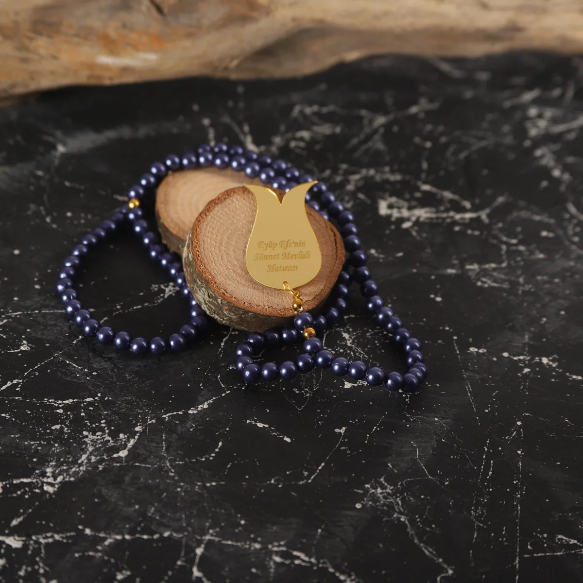 İsme Özel İnci Tesbih Lacivert