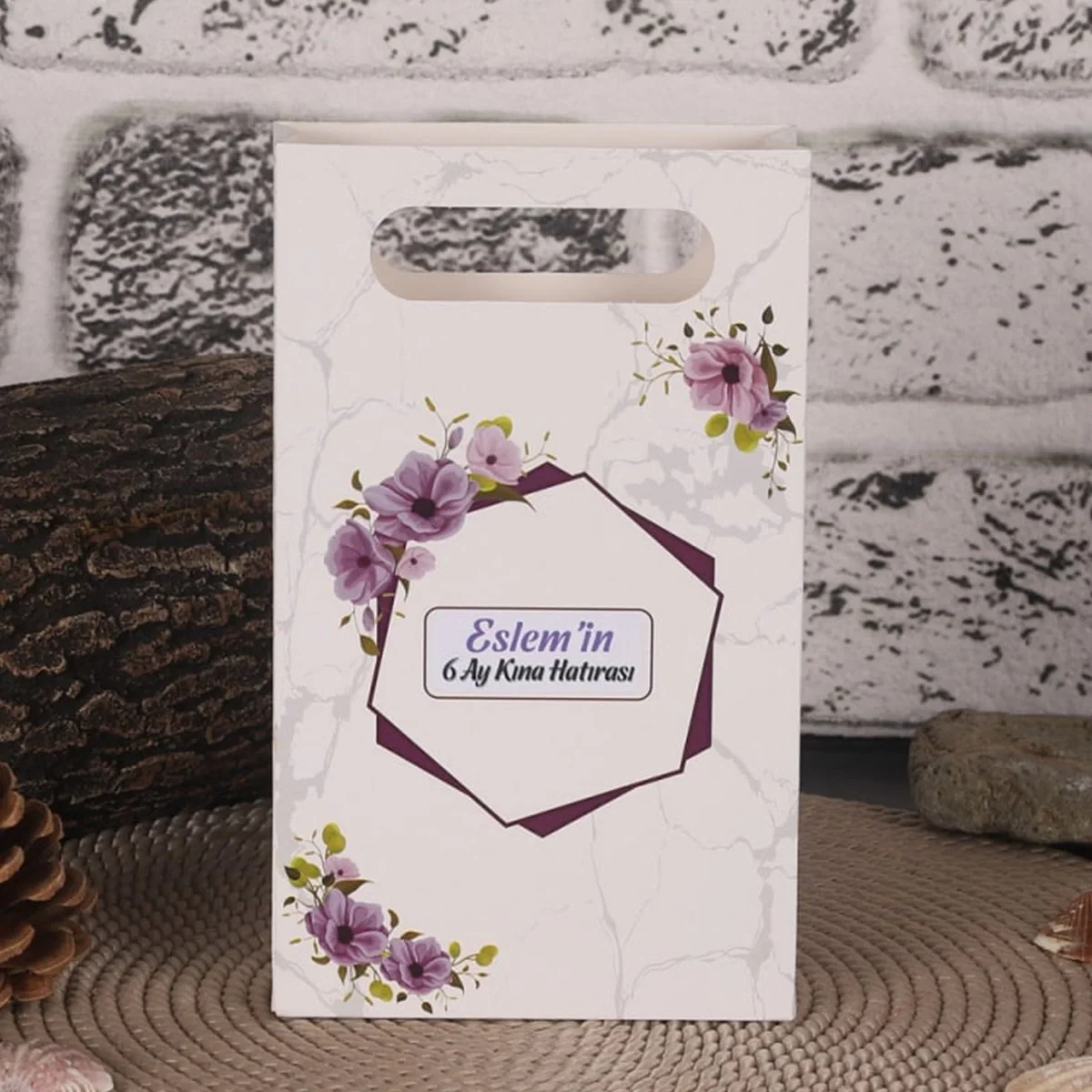Altıgen Mor Karton Çanta