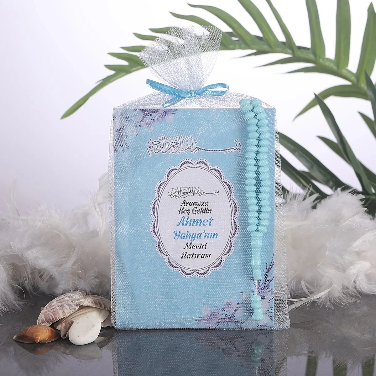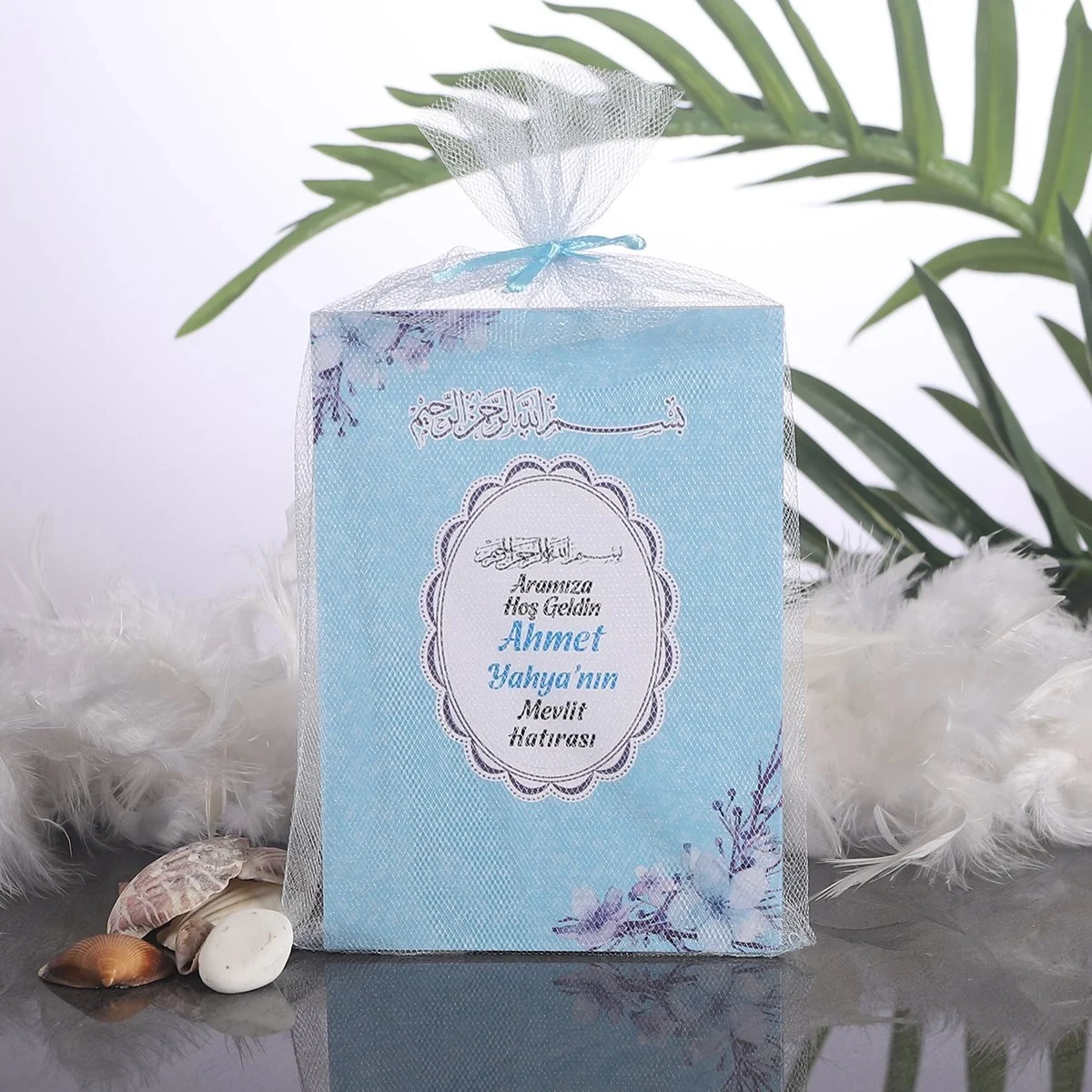 Çiçek Mavi Tül Kese + Yasin