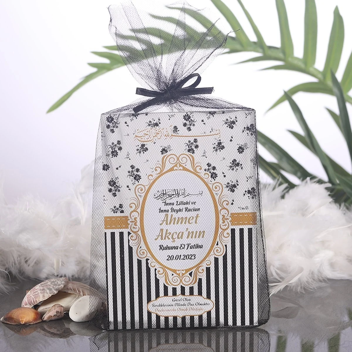 Çizgi Siyah Tül Kese + Yasin + Tesbih