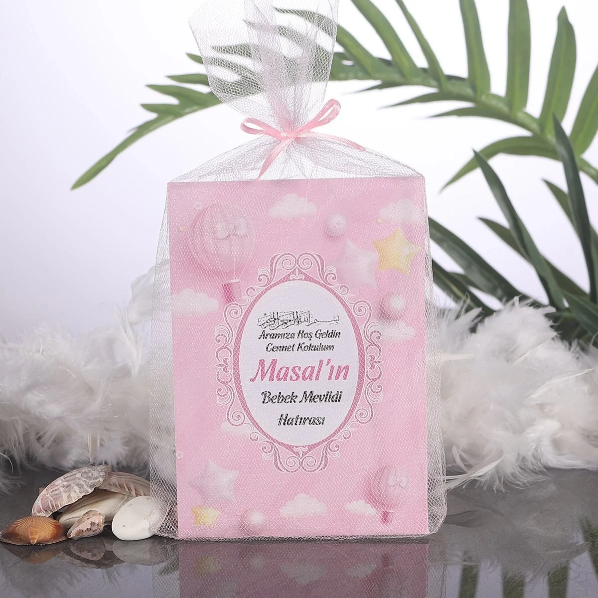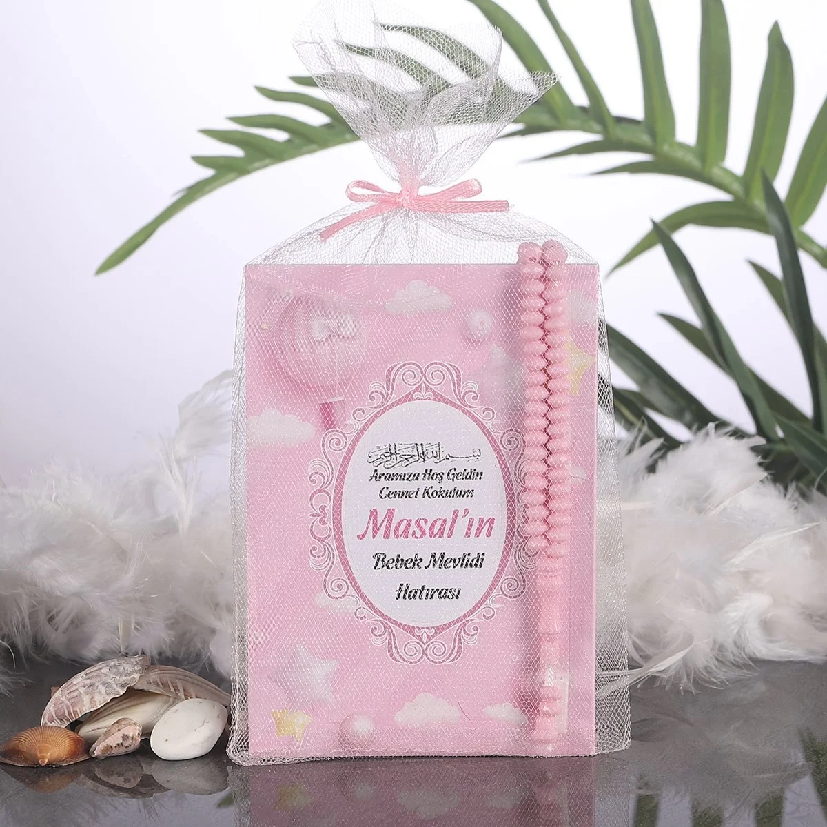 Balon Pembe Tül Kese + Yasin + Tesbih