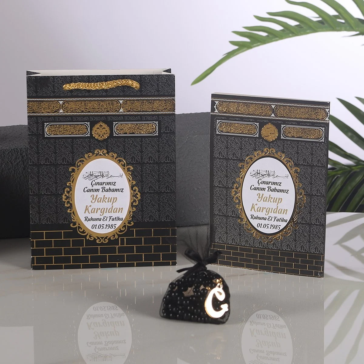64 Sayfa Yaldız Kabe Siyah Karton Çanta