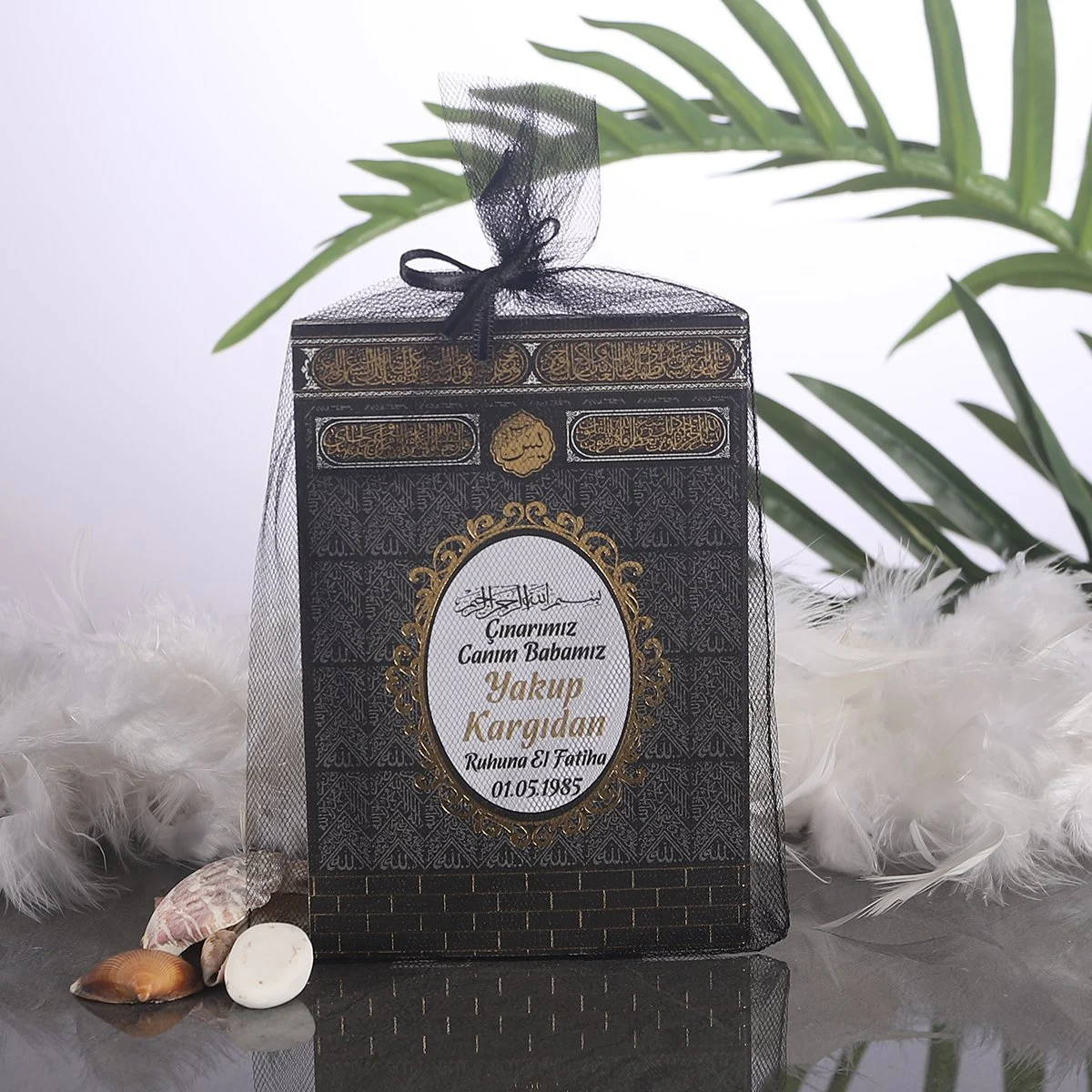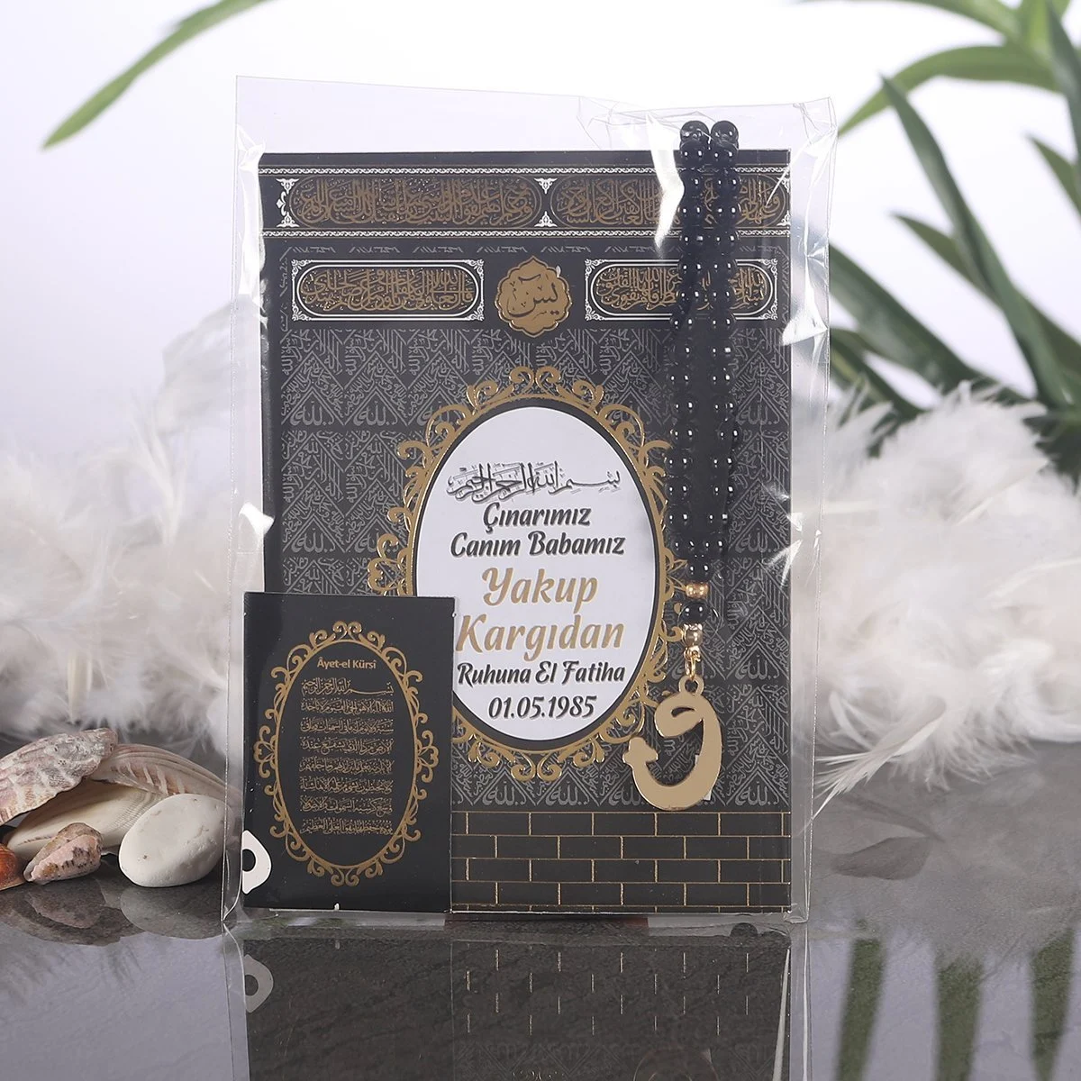 64 Sayfa Yaldız Kabe Siyah Tül Kese + Yasin + Tesbih